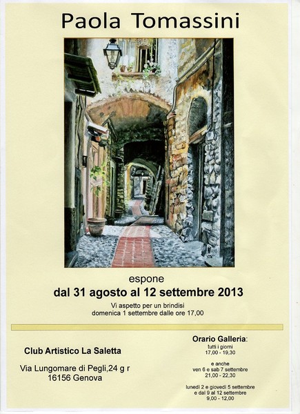 dal 31/08/2013 al 12/09/2013presso il "Club Artistico la Saletta" Via Lungomare di Pegli, 24G r - Genova