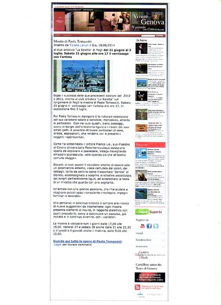mostra personale dal 21/06/2014 al 03/07/2014 presso il Club Artistico "La Saletta" - Via Lungomare di Pegli, 24g r - 16156 Genova