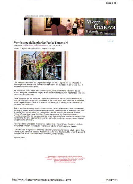 "Paola Tomassini ha il dono della facile prospettiva, della robusta espressione, del forte e pur delicato accento: elementi questi non comuni e segni di una personalità artistica.